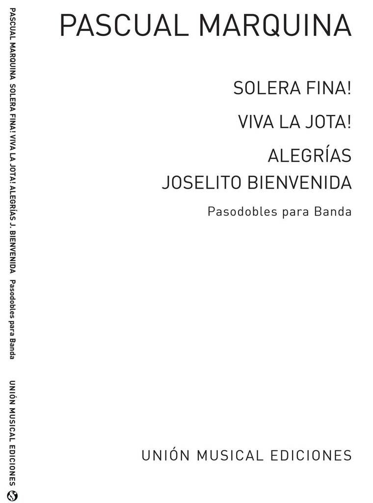 Four pasodobles for band by the popular Spanish composer, the titles of which are 'Solera Fina', 'Viva La Jota', 'Alegrias' and 'Joselito Bienvenida'. Includes piano conducting score and full set of parts.