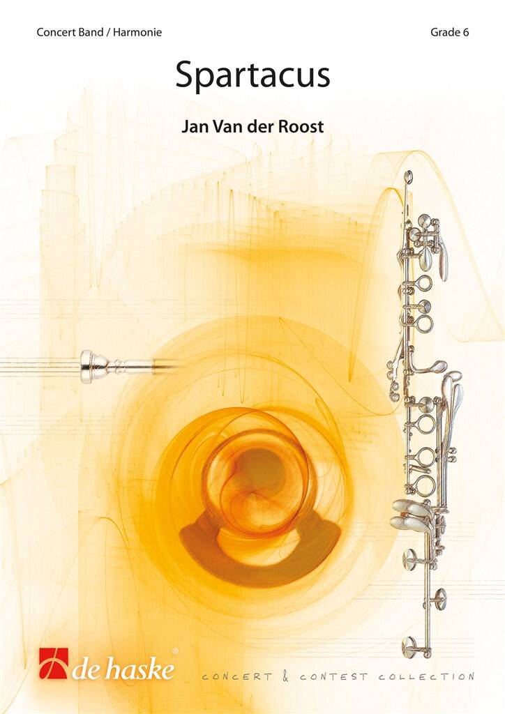 Spartacus is a "Symphonic Tone Poem" with 3 joints. Each section has its own melodical materials, however: in the final movement the main theme from the second section returns in a 'grandioso'-tutti. The last bar but one recaptures the 'oriental' atmosphere of the very beginning. The first section (= from the beginning till J) builds up a climax by repeating and accumulating some melodical and rhythmical structures. The oriental character of the melodical fragments refers to the origin of the Roman slaves. The second section evokes the love between Spartacus and his love by giving a peaceful atmosphere. The mean theme (presented the first time at letter L) has a broad and wide character and refers slightly to film music. In this part of the composition, a special attention is given to the orchestration. The final section is more aggressive and martial and refers to the revolt of the slaves against the Roman oppressors. In the middle of this movement, an accumulation of the 12 tones symbolises the crucifixion of the slaves: the english horn resumes partly the cadenza of the flute (at letter J), as if he wants to show again the eternal love between Spartacus and his love a very last time ... The theme at the third bar of letter T is actually based on the 2nd theme of this section (which starts at the fifth bar of letter R), but has been worked out rhythmically.Duration: 13:50