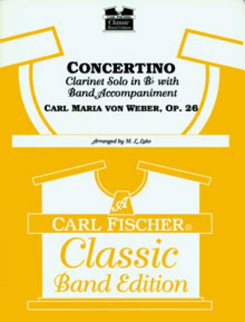 Carl Maria von Weber (1786-1826) originally wrote his Concertino in Eb, Op. 26 in 1811 for famed German clarinetist Heinrich Baermann and it is typical of the florid, early romantic period style of Weber's instrumental concertos. The piece has become well-known to American performers because of this celebrated band transcription by Mayhew Lake. Written within the technical abilities of younger, gifted players, Concertino will be a fine way to demonstrate the clarinetist's potential for brilliant display and heartfelt lyricism. This reissue of the famous transcription includes a corrected and edited version of the Clarinet solo part by Denise Schmidt.