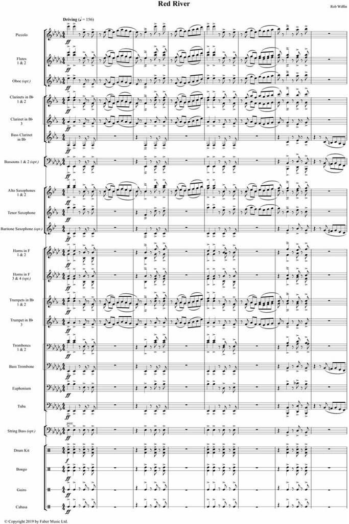 Red River is a piece full of raw energy. The title is about the feeling engendered by the name rather than a reference to a specific place. In the composer's mind it is a river coloured red by the dust of the earth in a hot, sun-drenched landscape. Full of fiery rhythmic drive and syncopation carried along by Latin percussion, performers will enjoy the vigour and verve of the music. Suitable for intermediate level (Grade 3/4) symphonic wind band. Red River is a piece full of raw energy. The title is about the feeling engendered by the name rather than a reference to a specific place. In the composer's mind it is a river coloured red by the dust of the earth in a hot,sun-drenched landscape. Full of fiery rhythmic drive and syncopation carried along by Latin percussion, performers will enjoy the vigour and verve of the music. Suitable for intermediate level (Grade 3/4) symphonic wind band.