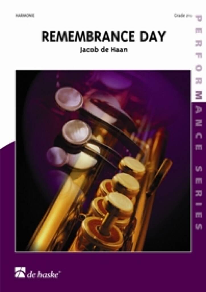 Remembrance Day (Totengedenken) is a chorale-like piece in memory of those who have died in service. Jacob de Haan composed this work for a concert by the symphonic wind orchestra Symphonic Winds, which he conducted in Germany on Volkstrauertag (national remembrance day). The composition is based on a text from Totengedenken (Commemoration of Those Who Have Died). This narrative text is provided in four languages, and is intended to be spoken (using a microphone) ad libitum during the performance. Choir parts are also available to complement the performance.