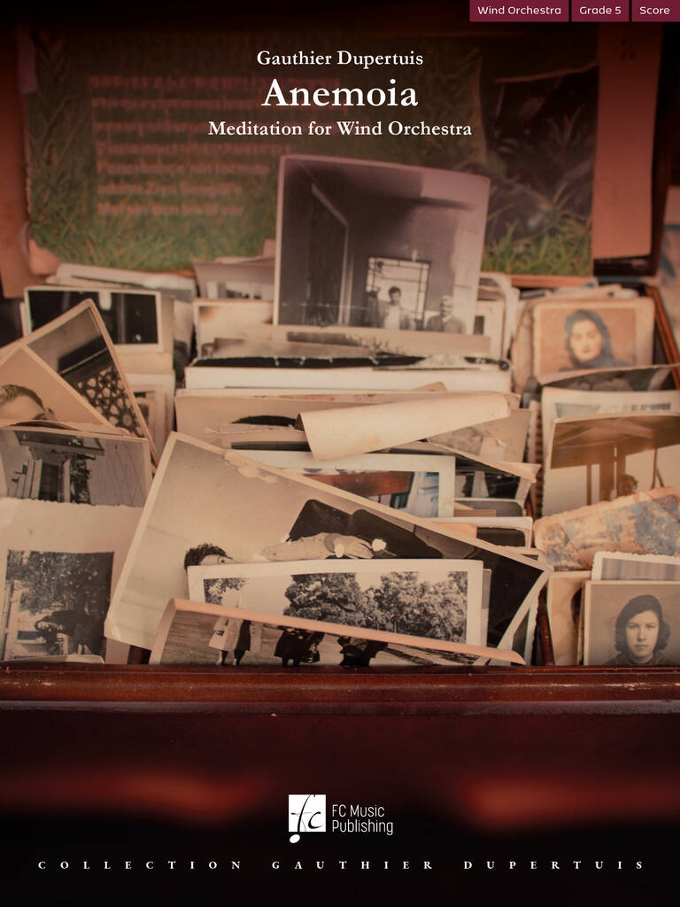 Gauthier Dupertuis wrote Anemoia as part of his master's thesis at the Lausanne University of Music. It is dedicated to the most significant figure in his musical life: his teacher Jean-Claude Kolly.Anemoia is the name given to the feeling of nostalgia that one feels for a time that has never known. This emotion often translates into the uneasy sensation of having lost something important or of not living at the right place or time. Fascinated by this concept, Gauthier Dupertuis tried to translate it into music oscillating between exaltation, anguish and nostalgia.The piece is formed by two movements: (Un)desired sorrow and Behind the glass of time. The first movement initially evokes the feeling of unease one feels when suddenly struck by anemoia. It then evolves into majestic atmospheres, marking our admiration for times gone by. The second movement treats anemoia in a more melancholic way.The premiere took place on 6th December 2024, during Jean-Claude Kolly's last concert as a conductor of the Concordia de Fribourg, marking thirty years spent conducting this wind orchestra.