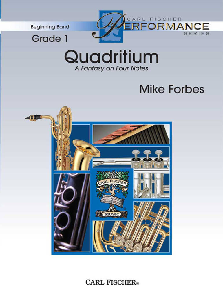 Using only for notes, composer Mike Forbes has built an impressive composition for the beginning band. Quadritium is a perfect vehicle with which to showcase your group at a concert or festival. This piece also presents the possibility of a cross-curricular tie-in to science.