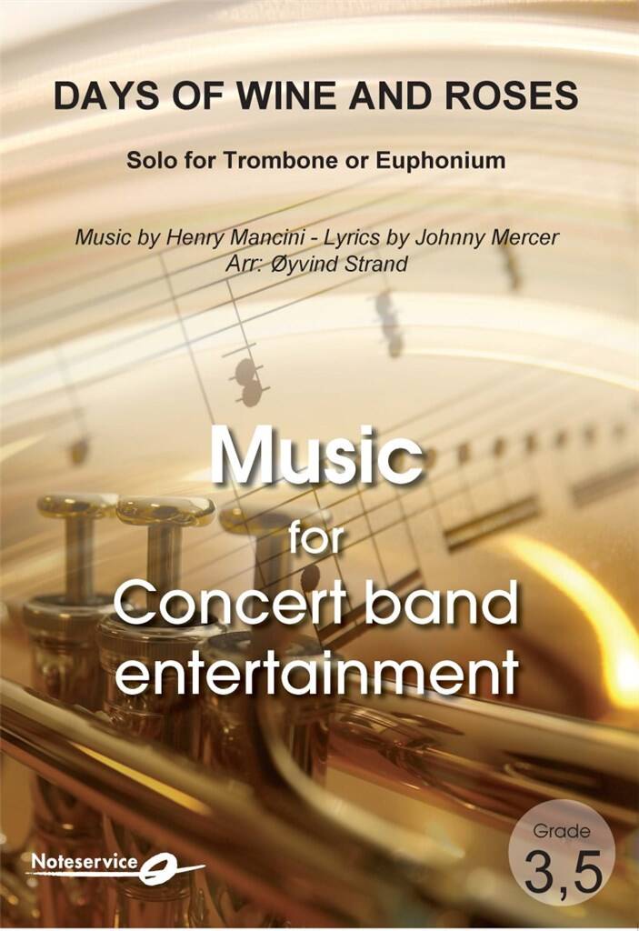The main theme from the movie with the same title, produced in 1962, directed by Blake Edwards and starring Jack Lemmon and Lee Remmick in the leading roles. The composer is one of the great names in music for the movies, Henry Mancini, with lyrics by Johnny Mercer. The song won a Grammy Award for best movie theme. This arrangement was made in 2006 and performed for the rst time by Suoni Wind Orchestra of Skiem, Norway at their Promenade Concert Days of Wine and Roses. It was later recorded on their CD Ambassador". On both occasions it was conducted by the arranger, yvind Strand.