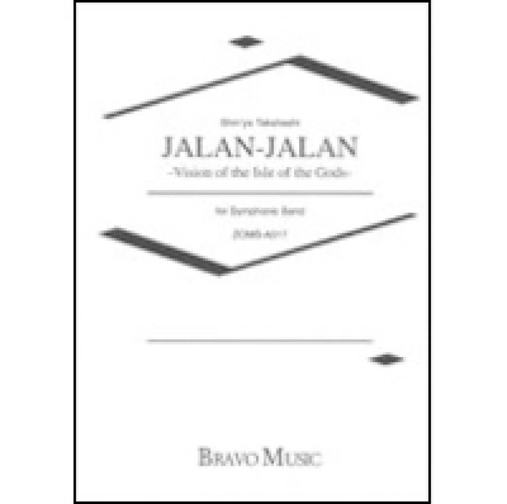 Jalan-jalan was inspired by the music of Bali, Indonesia based upon its unique melodies, modes and rhythms. As part of the independent archipelago "Ryukyu", Okinawa (southernmost Japan) had an active exchange with Bali that included cultural and musical influences. Jalan-jalan means "walkabout" or "walking journey" in Indonesian. It describes a walk in the so-called Isle of the Gods, encountering Bali's beautiful scenery and daily life. Its four themes include "Dawn," "Morning Market," "Beach in Early Afternoon" and "Kecak Dance (a form of Balinese dance and music drama, performed primarily by men) in Torchlight."An imposing pesante introduction will properly establish this song's mood. Boldly balance winds and percussion to the prominent timpani solo. At Allegro Vivo, observe the lighter abbreviated scoring and balance melody/countermelody at E. Melodies are elongated at the Grazioso, and tenor/bass rhythm figures need enough separation to be felt. The urgent-feeling Presto must initially be reserved except for the percussive "slaps"; same thing again at O. The daunting rhythmic figure at Q is actually a chattering effect-combine the two elements to teach continuity and placement. Don't "over blow" the ending, but continue to emphasize unique rhythmic elements.(Shin'ya Takahashi)