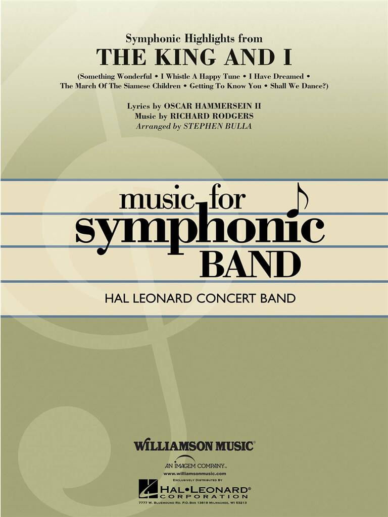 Opening on Broadway in 1951, and garnering multiple awards for the 2015 revival, few musicals can boast as many lasting and memorable songs as this Rodgers and Hammerstein masterpiece. Drawing on the classic orchestrations by Robert Russell Bennett, here is a fabulous medley for the symphonic stage. Includes: 'Something Wonderful', 'I Whistle a Happy Tune', 'I Have Dreamed', 'The March of the Siamese Children', 'Getting to Know You', and 'Shall We Dance?'
